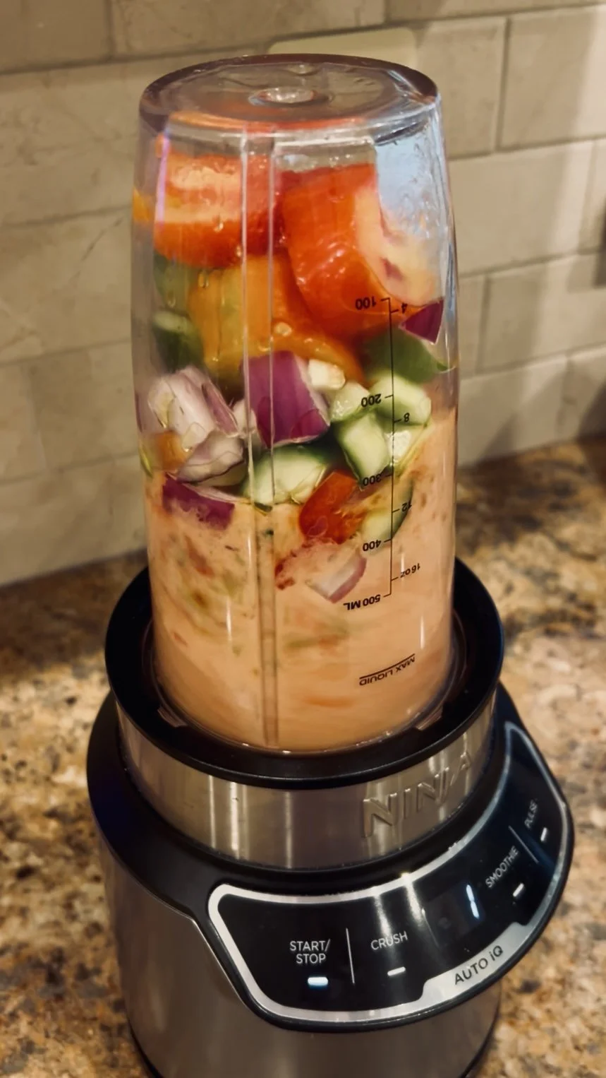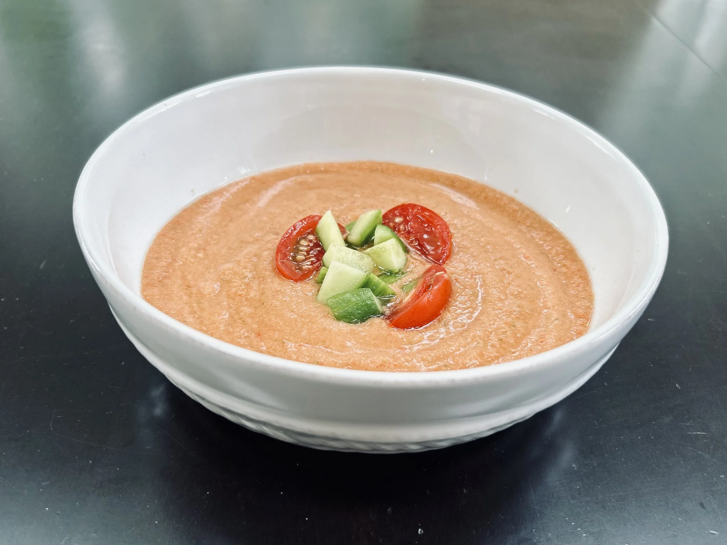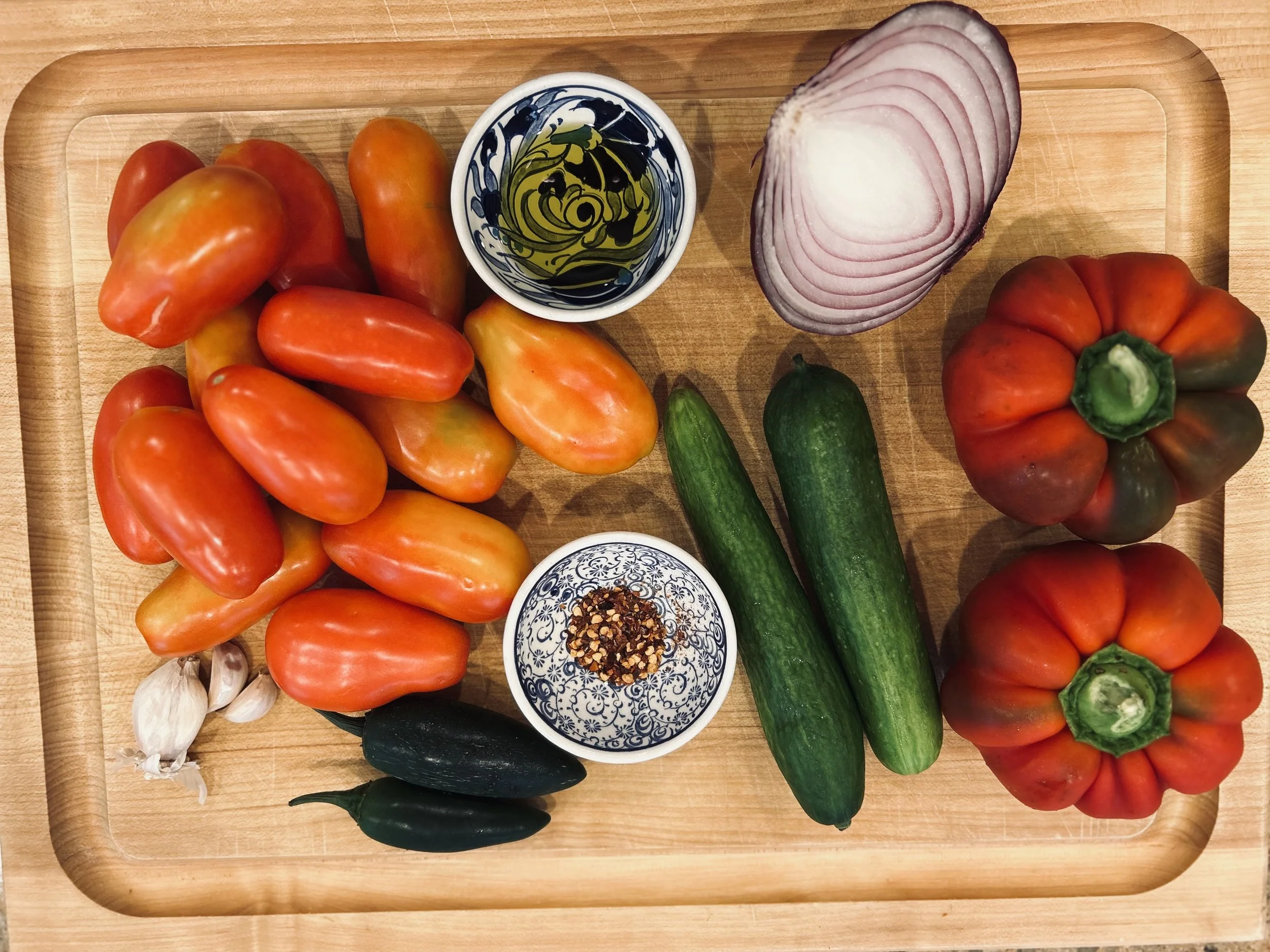 Enjoy this gazpacho on its own or add your favorite toppings, such as pumpkin seeds, feta cheese, or croutons. Serve alongside grilled chicken for a full meal!