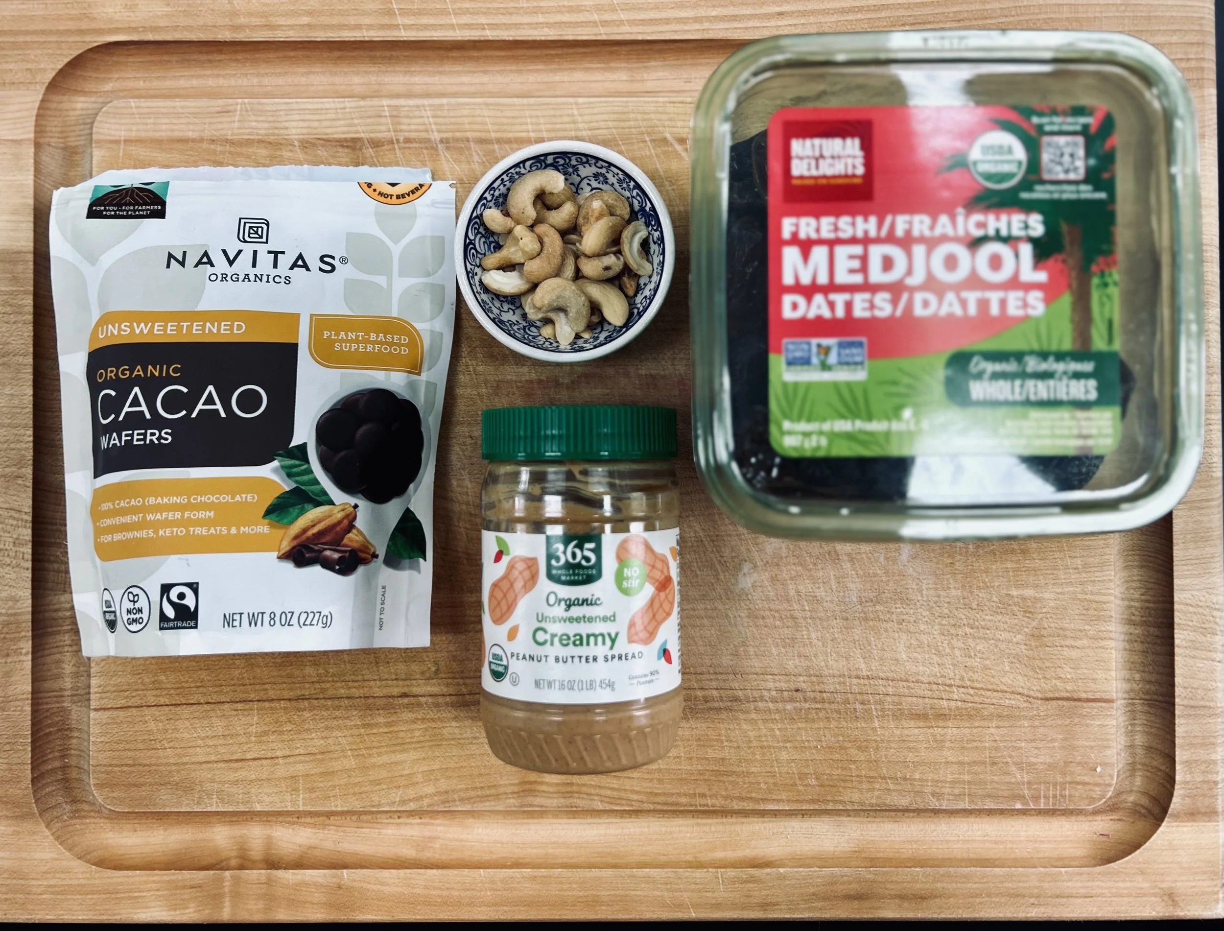Cacao Baking Chips- Substitute dark chocolate if you prefer. Check for added sugars - you don’t need any for this recipe due to how sweet the dates are.